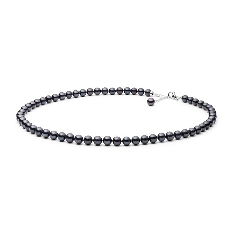 Silberne Kette mit schwarzen Perlen Kessy