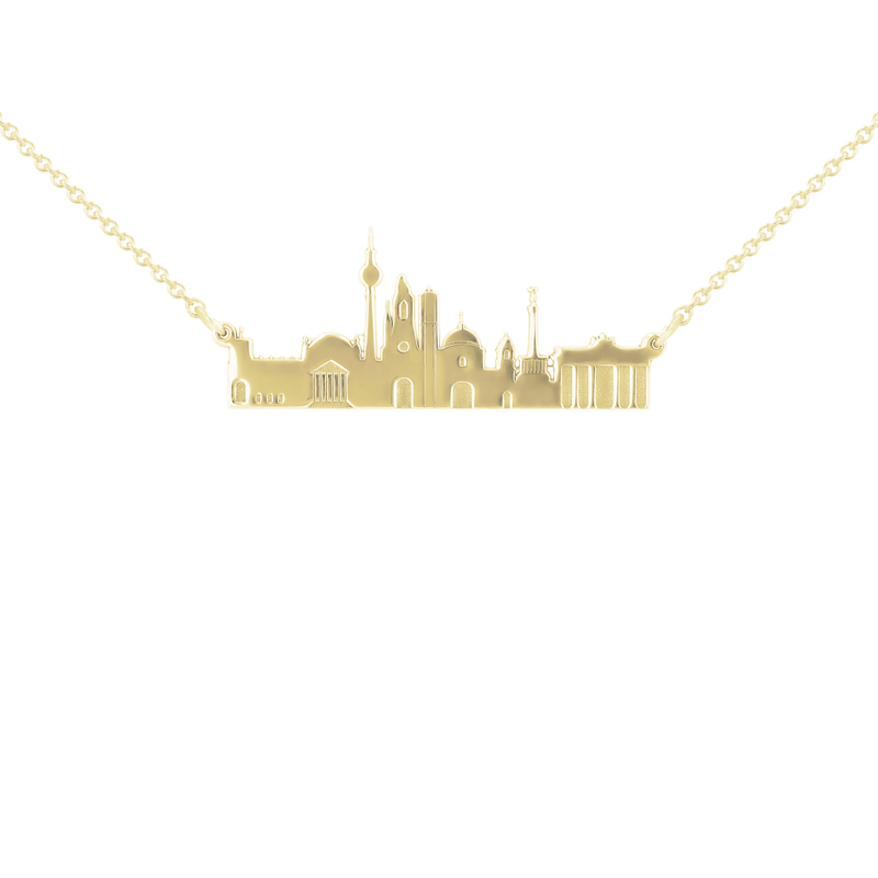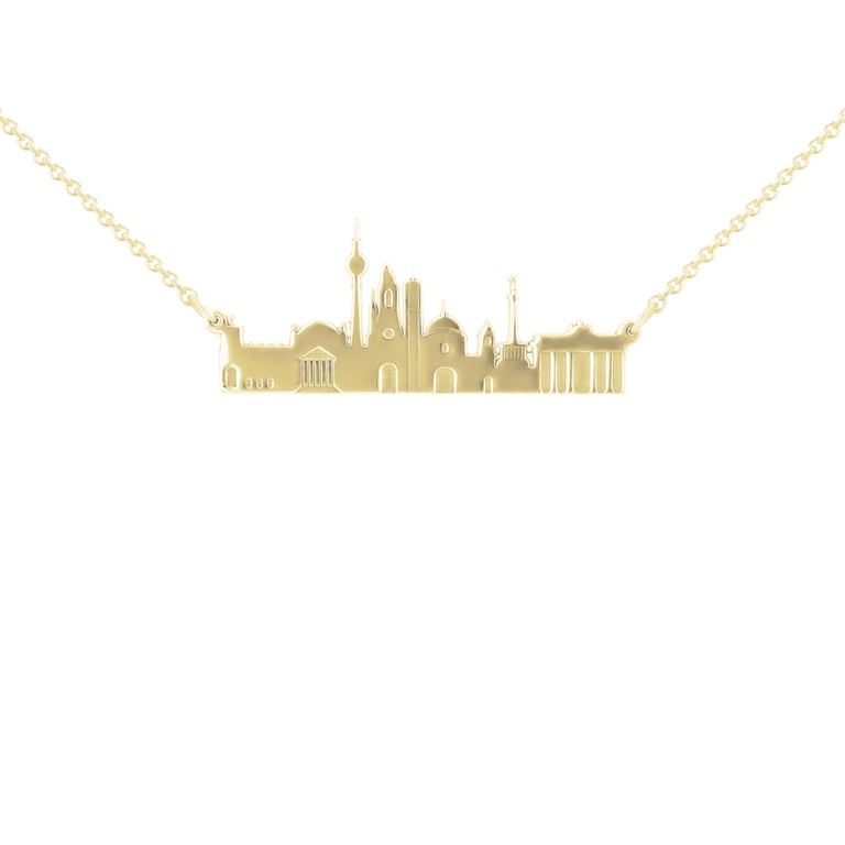 • Silberner Anhänger mit der Silhuette der Sehenswürdigkeiten des einzigartigen Berlins und der Möglichkeit einer Gravur