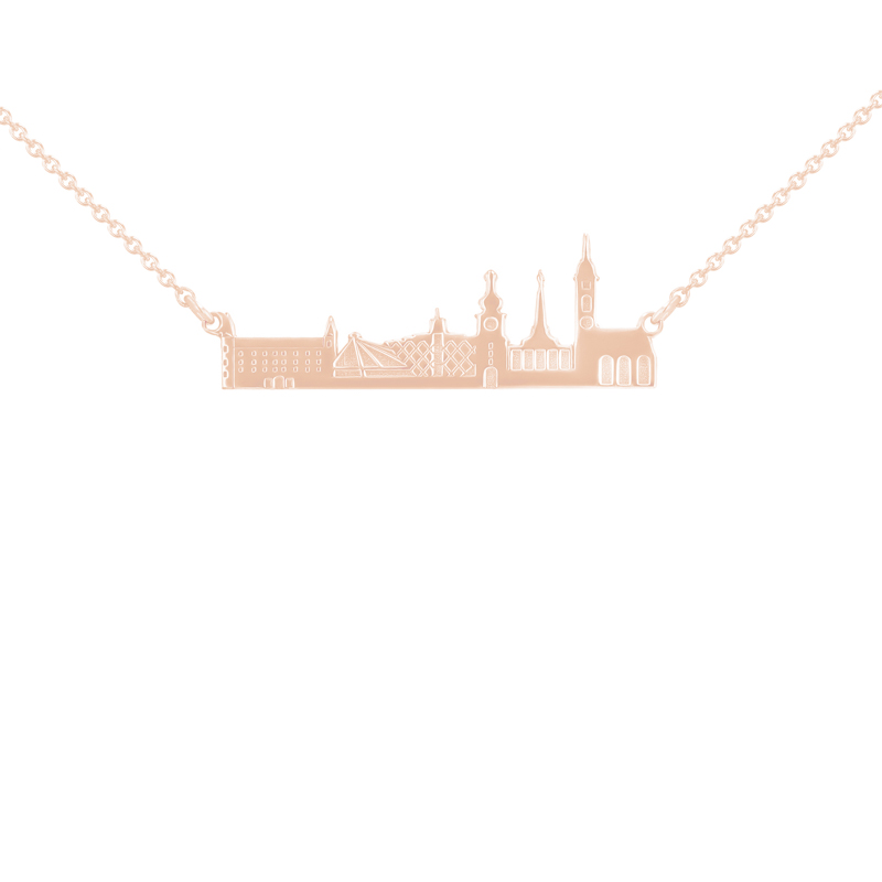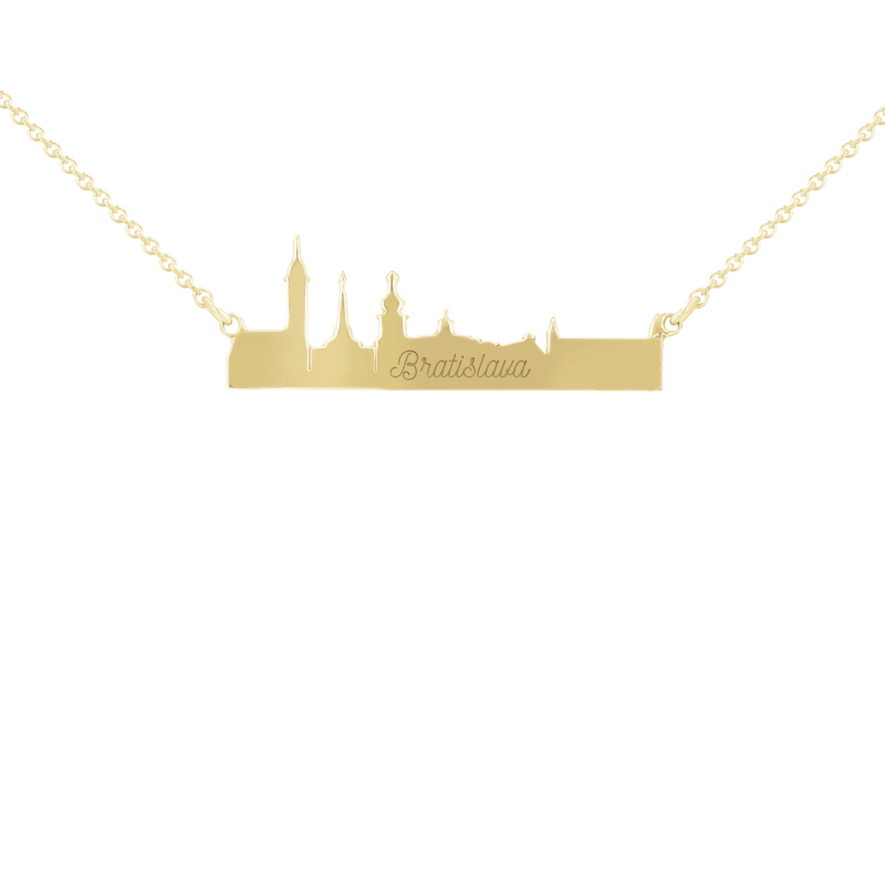 • Silberner Anhänger mit der Silhuette der Sehenswürdigkeiten der schönen Stadt Bratislava mit der Möglichkeit einer Gravur