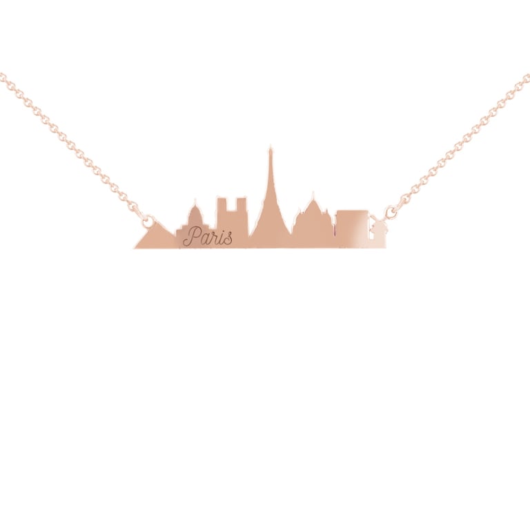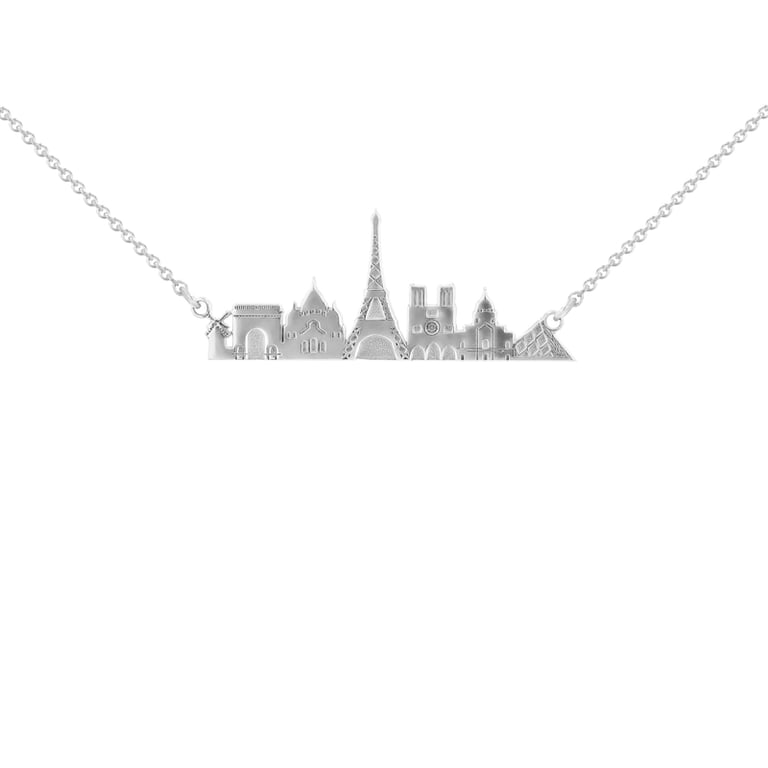 • Silberner Anhänger mit der Silhuette der Sehenswürdigkeiten der traumhaften Stadt Paris mit der Möglichkeit einer Gravur