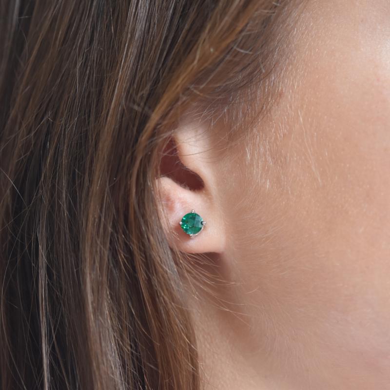 • die minimalistische Kollektion besteht aus silbernen Schmuckstücken mit runden Smaragden