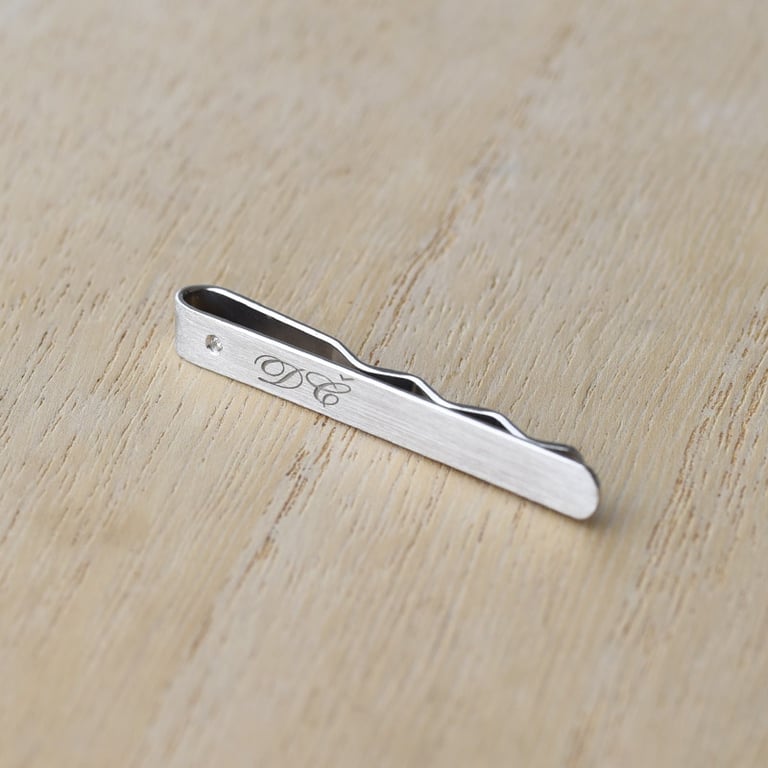 Silberne Krawattennadel mit Diamant und Gravur Ihrer Wahl Draco