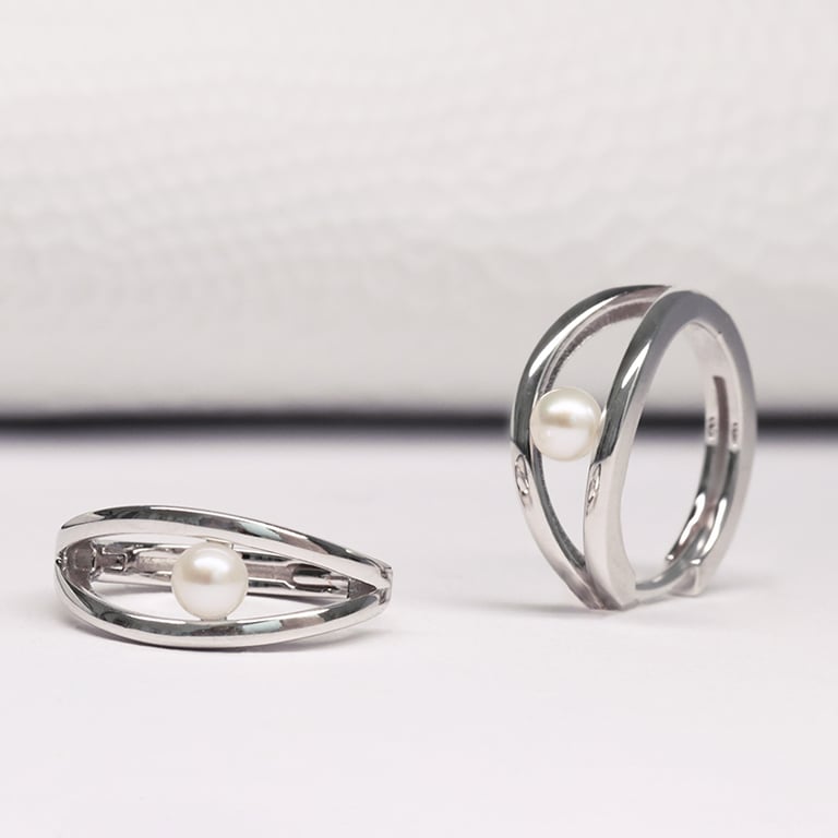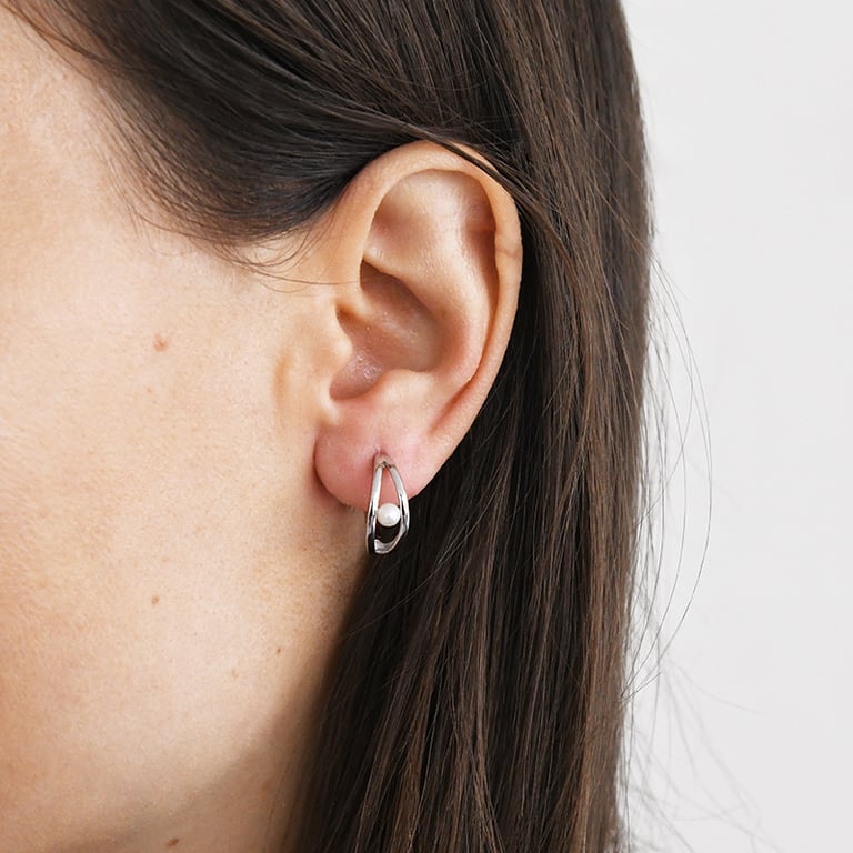 • jeder Ohrring besteht aus zwei Kreisen, die eine kleine weiße Perle halten