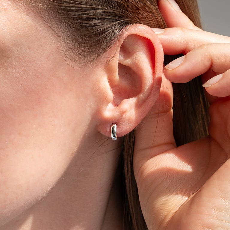 • rhodinierte Silberohrringe mit einem Durchmesser von 10 mm und einer Breite von 3 mm