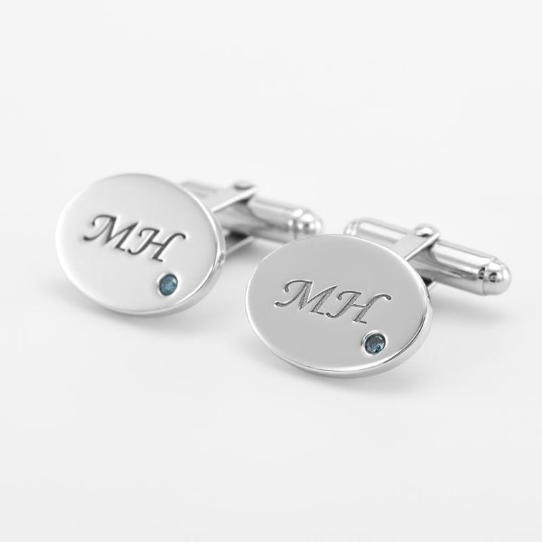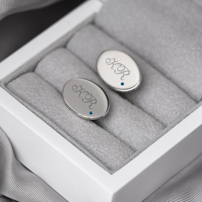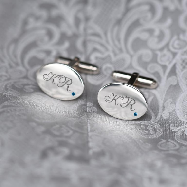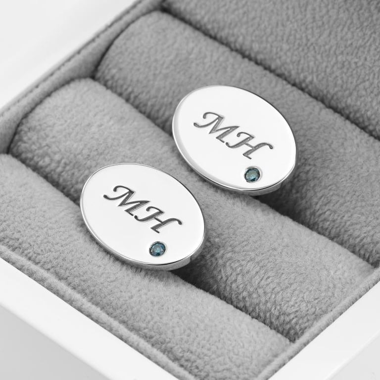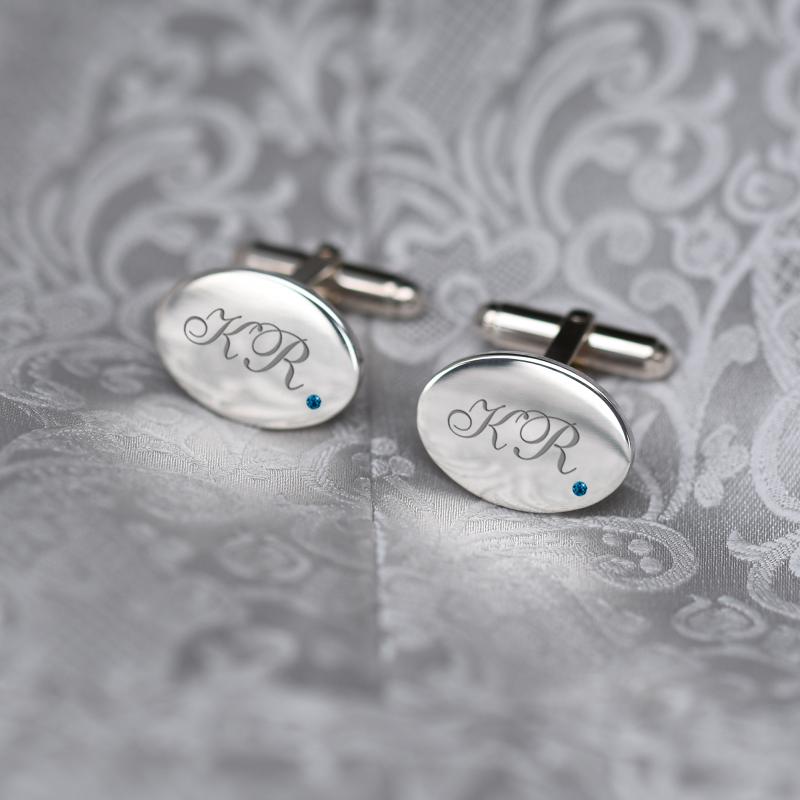 • gravierte Manschettenknöpfe mit blauen Diamanten sind immer die richtige Wahl
