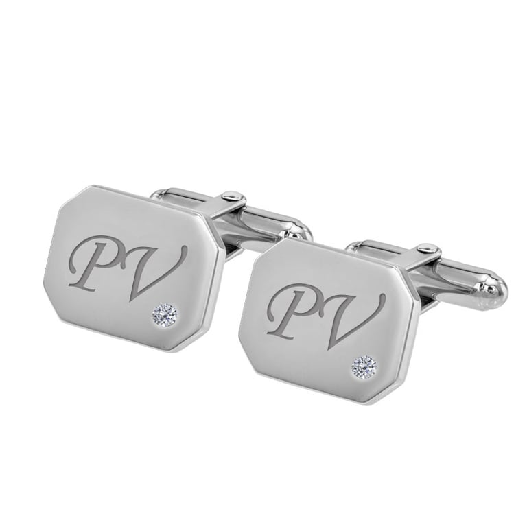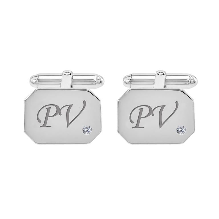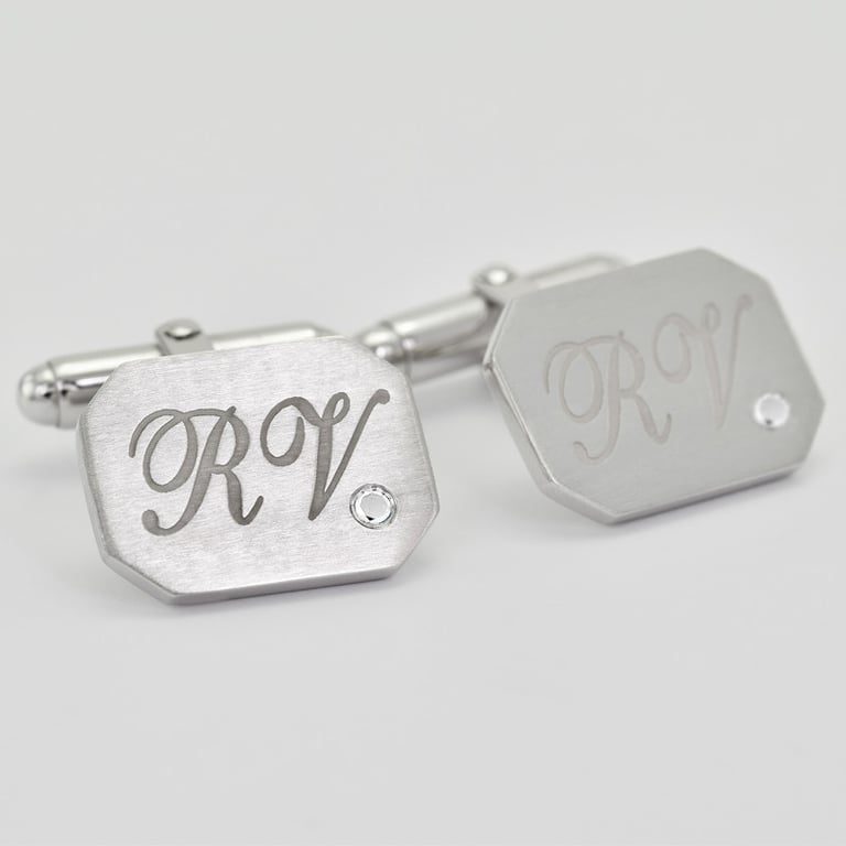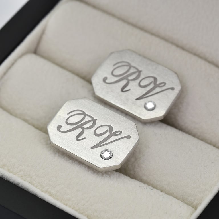 Silberne Manschettenknöpfe mit Gravur und Diamanten Aaruah