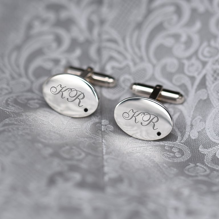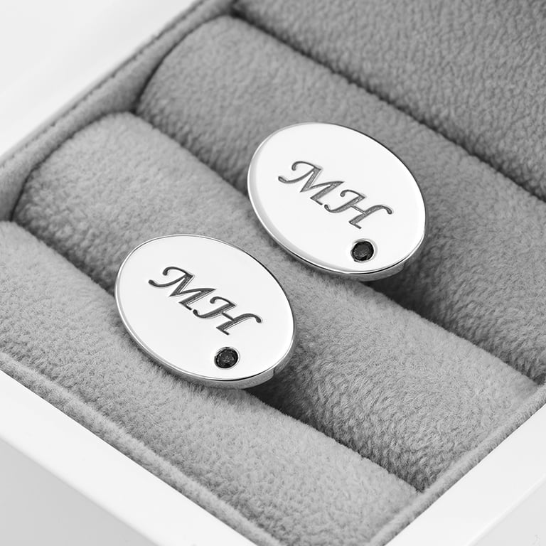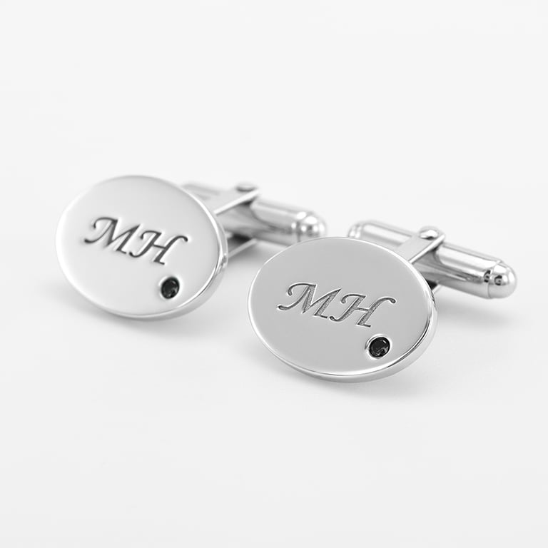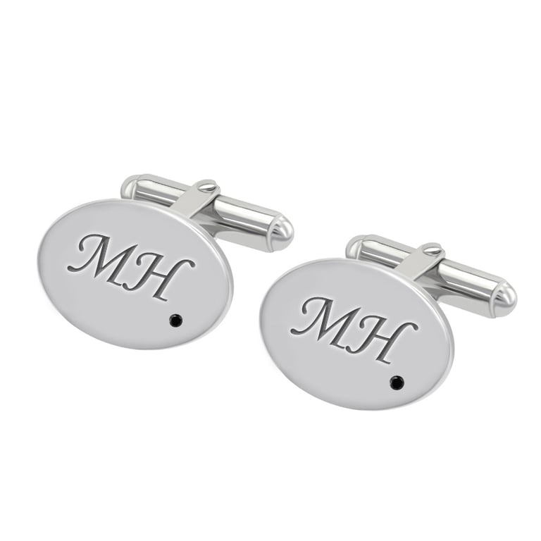 Silberne Manschettenknöpfe mit Gravur und schwarzen Diamanten Janvier