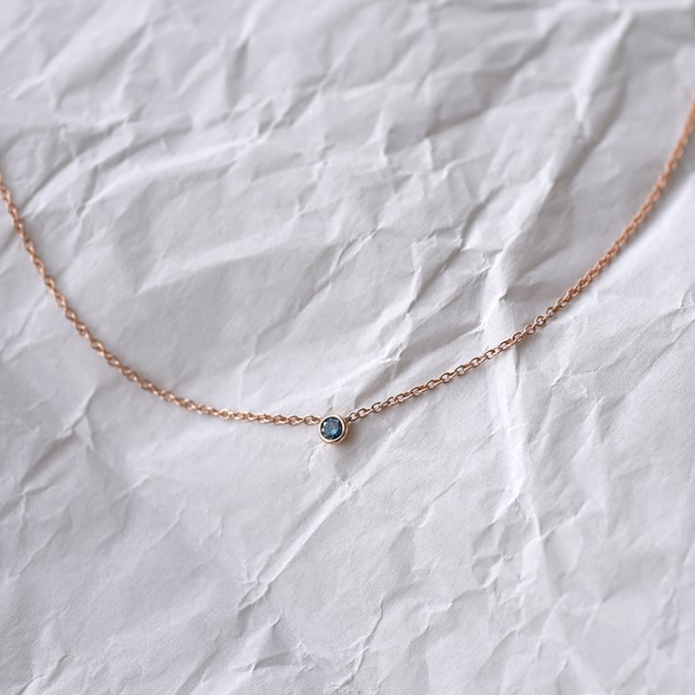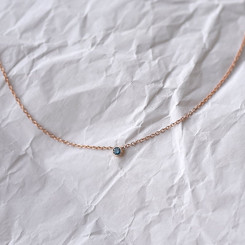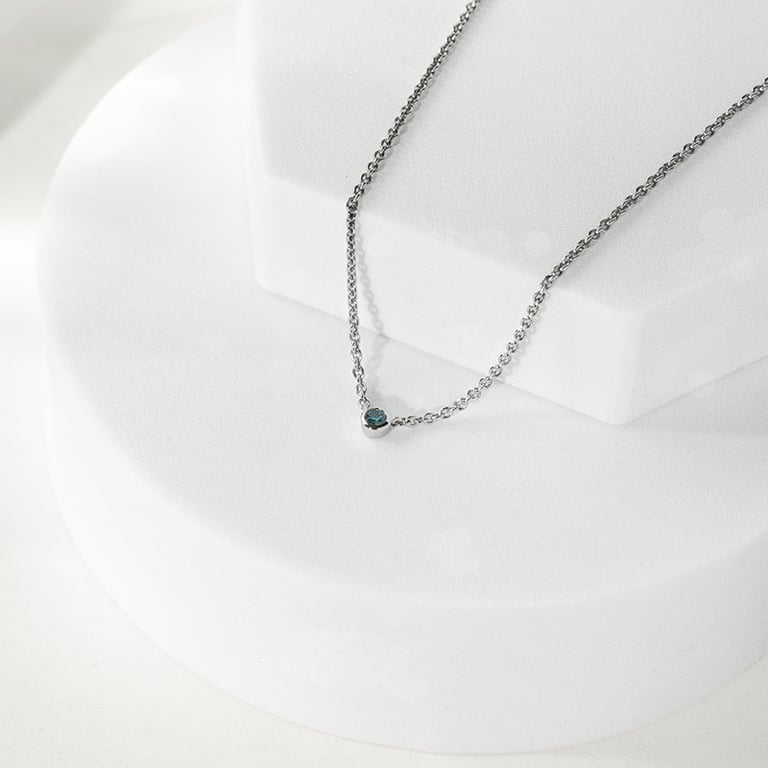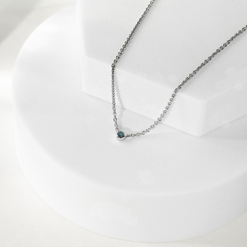 Silberne minimalistische Kette mit einem blauen Diamanten Glosie