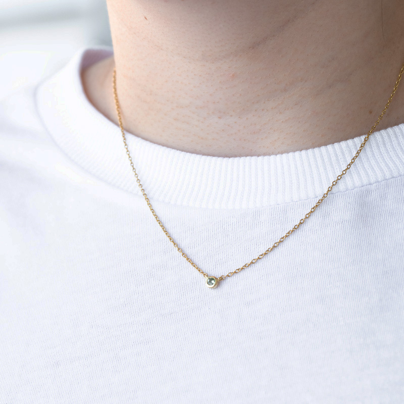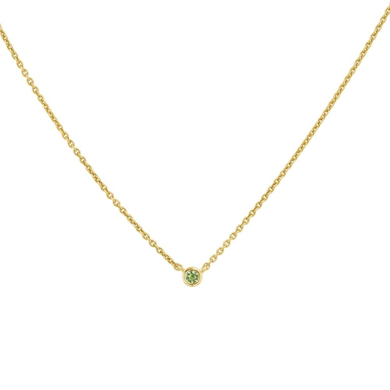 Silberne minimalistische Kette mit einem grünen Saphir Glosie