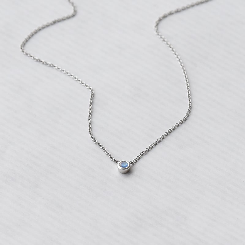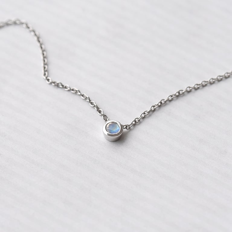 Silberne minimalistische Kette mit einem Mondstein Glosie