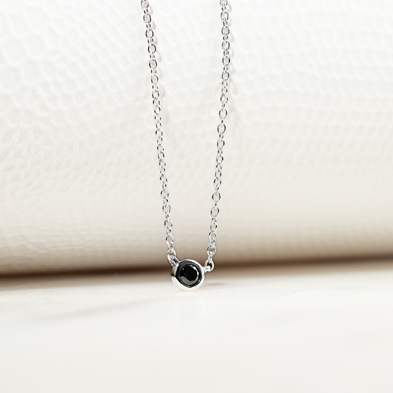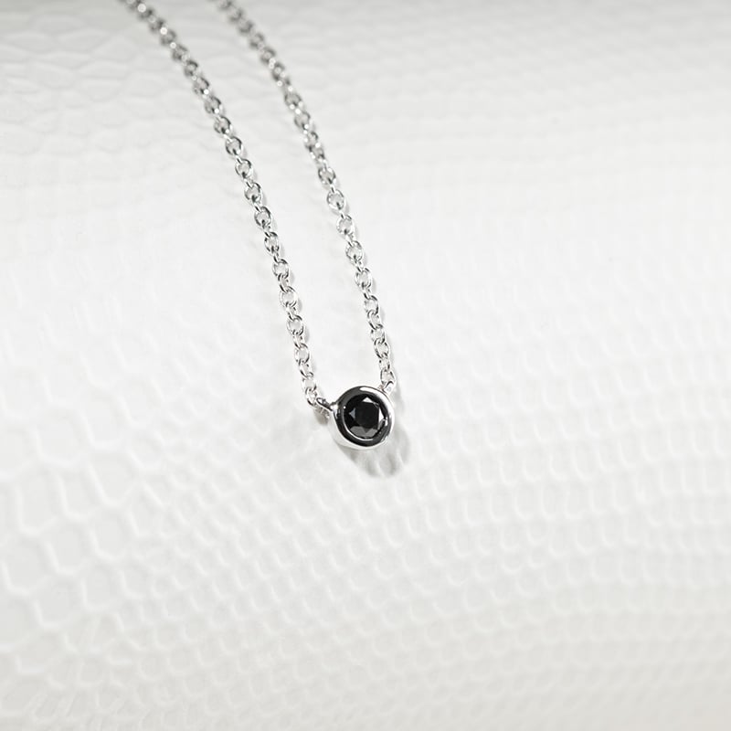 Silberne minimalistische Kette mit einem schwarzen Diamanten Glosie