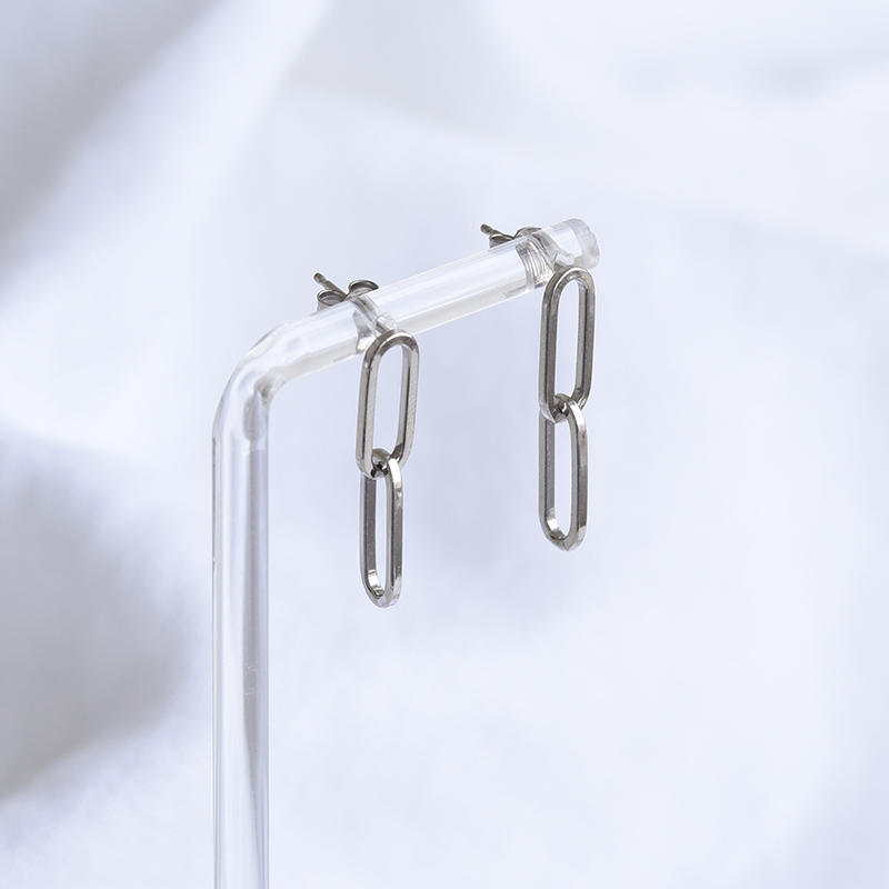 • die Form der Ohrringe erinnert an eine Öse oder Büroklammer