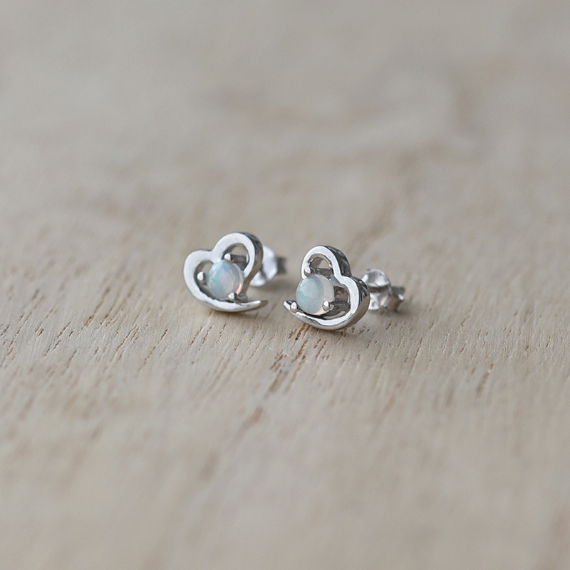 Silberne Ohrringe in Herzform mit Opalen Clelia