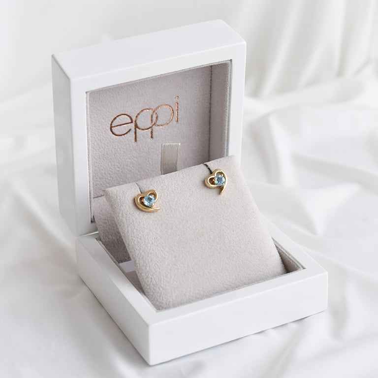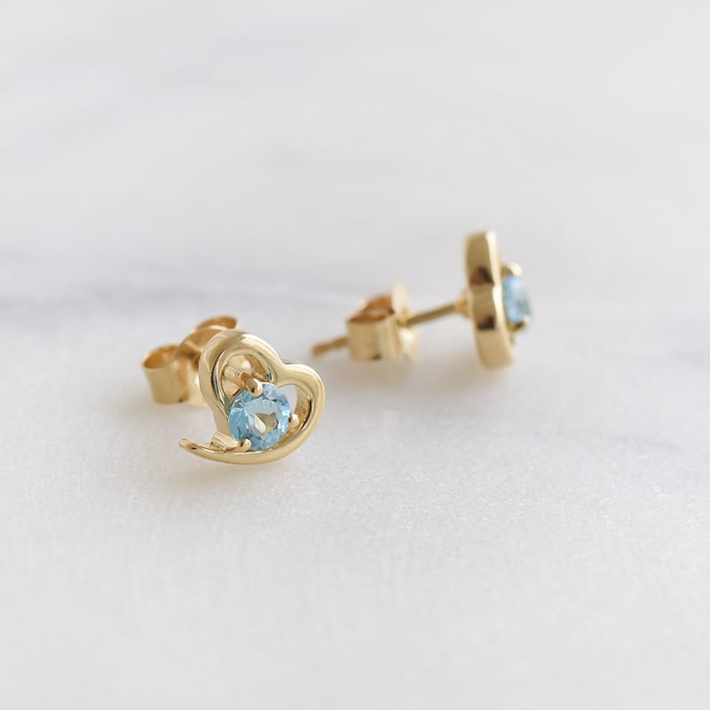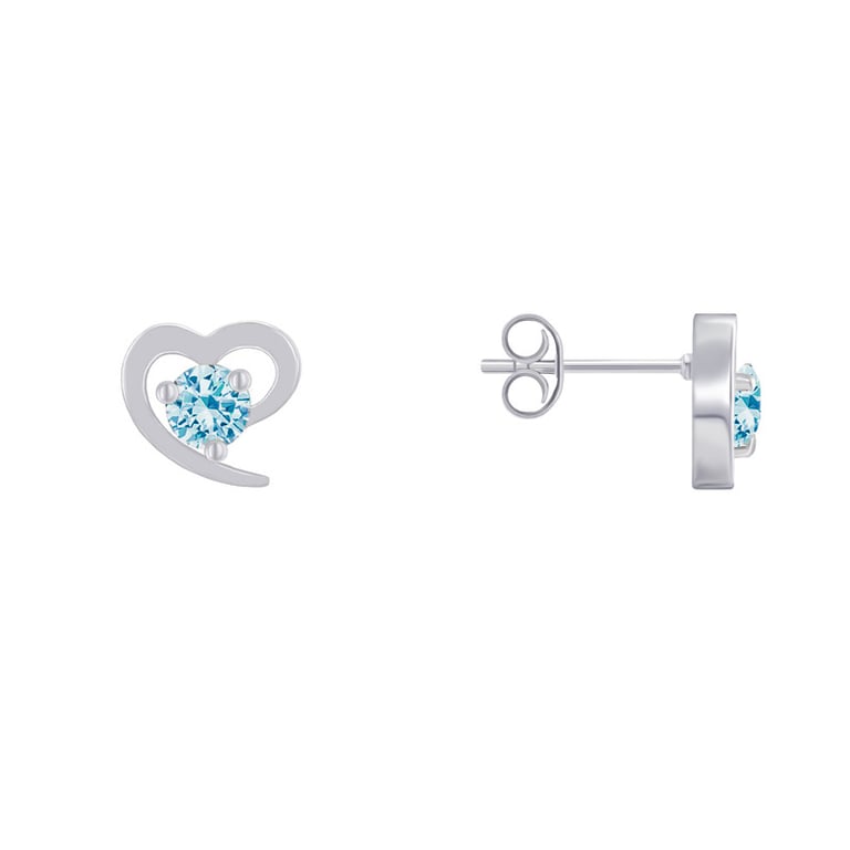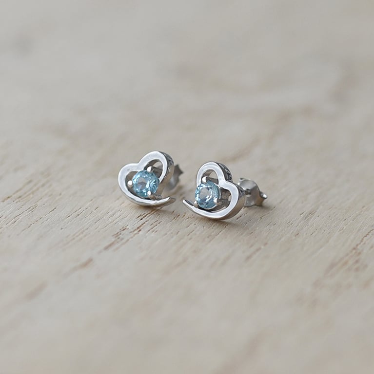 • in einem zarten silbernen Herzen ruht ein runder hellblauer Topas in drei Krappen