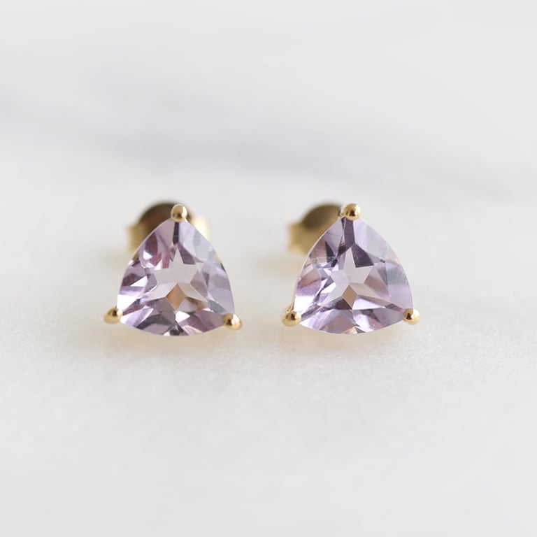 • die romantischen Ohrringe bezaubern mit rosa Amethysten in Dreieckform