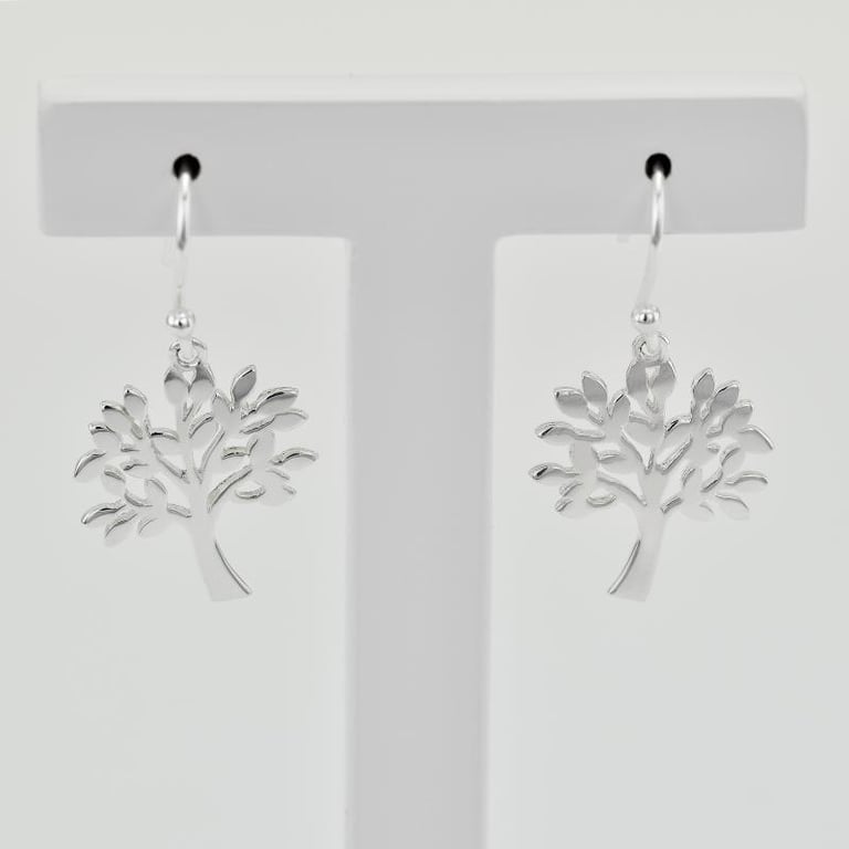 • silberne Ohrringe mit dem Symbol des Lebensbaums