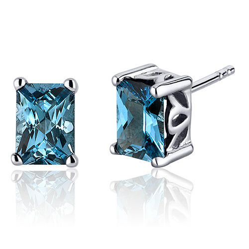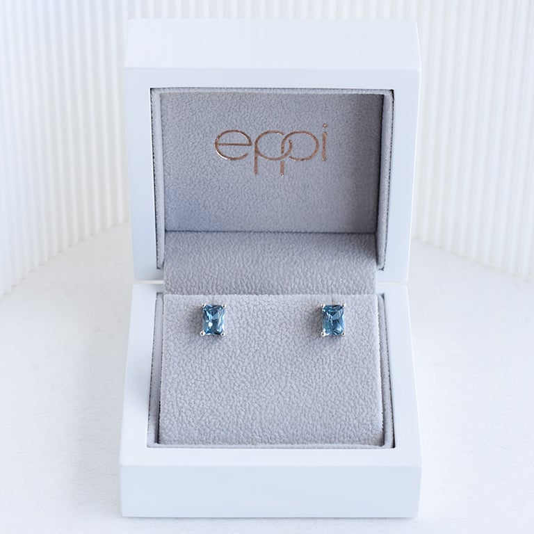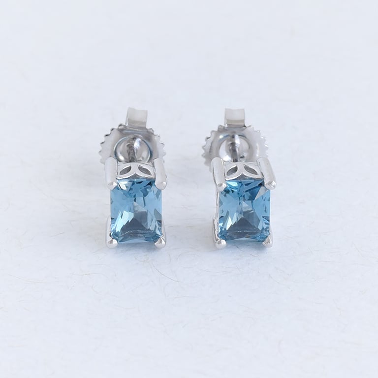 • silberne Ohrstecker mit blauen rechteckigen Topasen
