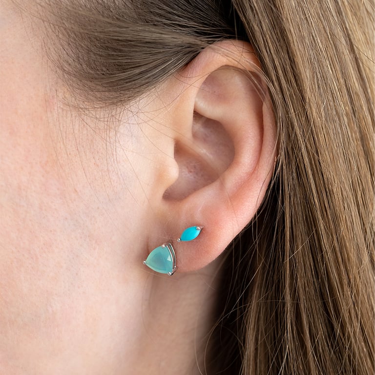 • zarte Ohrstecker mit natürlichem Chalcedon in hellem Türkis-Ton
