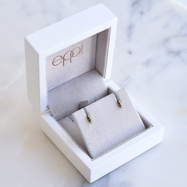 • ein Trio von weißen Diamanten in jedem Ohrring unterstreicht Ihre Gesichtszüge schön