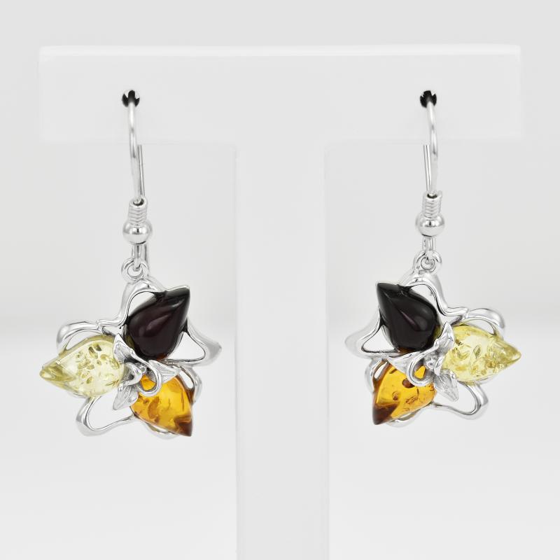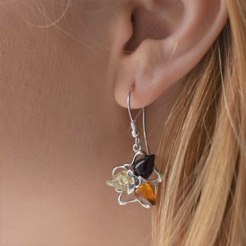 Silberne Ohrringe mit drei Bernsteinen Milie