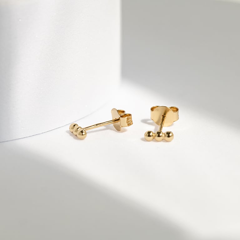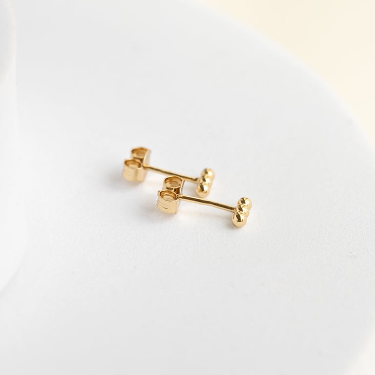 • Ohrringe aus einer Reihe von kleinen Kugeln aus vergoldetem Silber