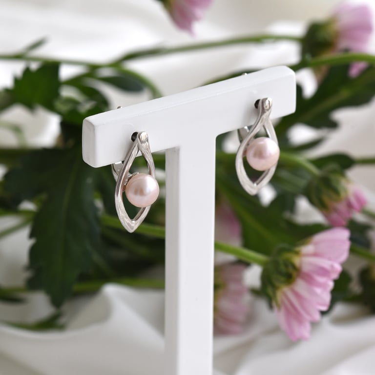 Silberne Ohrringe mit lavendelfarbenen Perlen Carina
