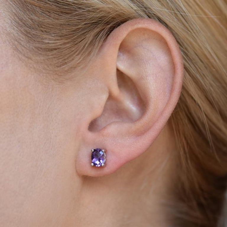 • die silbernen Ohrringe erstrahlen durch die lila Edelsteine
