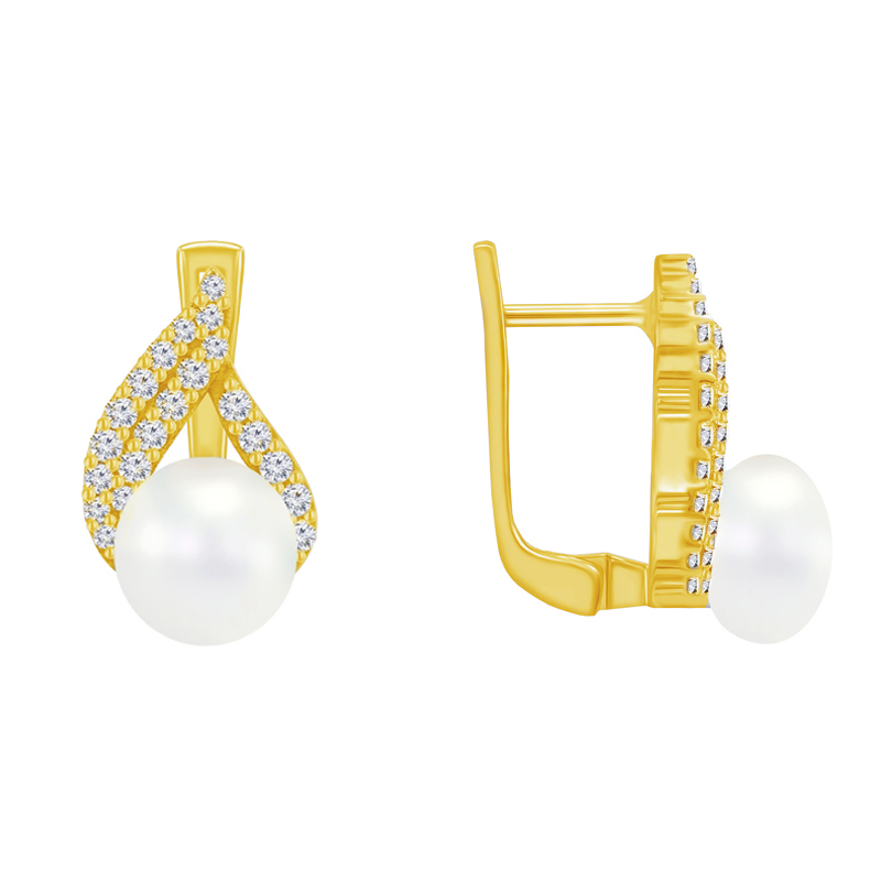 Silberne Ohrringe mit Perlen und Zirkonia Zona