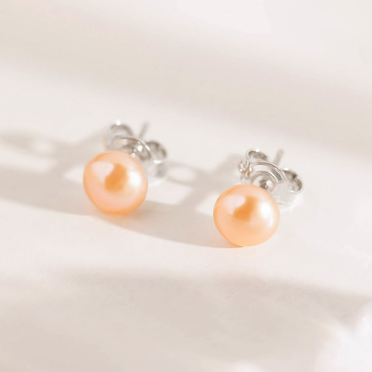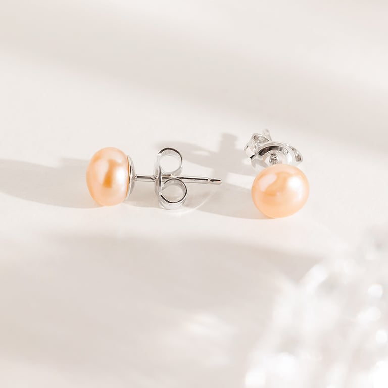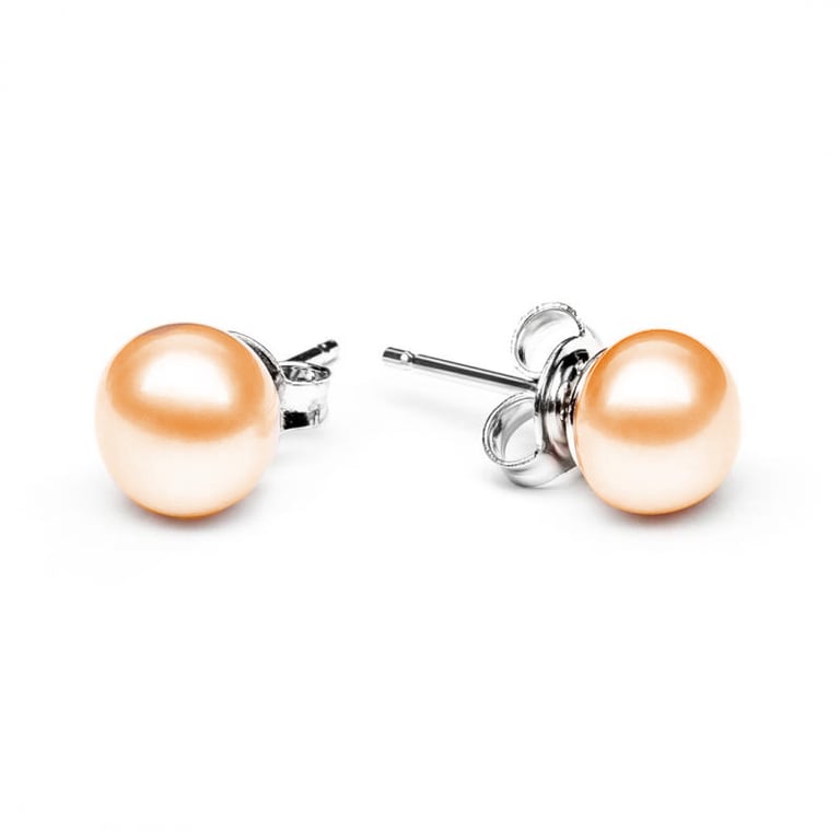 Silberne Ohrringe mit pfirsichfarbenen Perlen Bahia