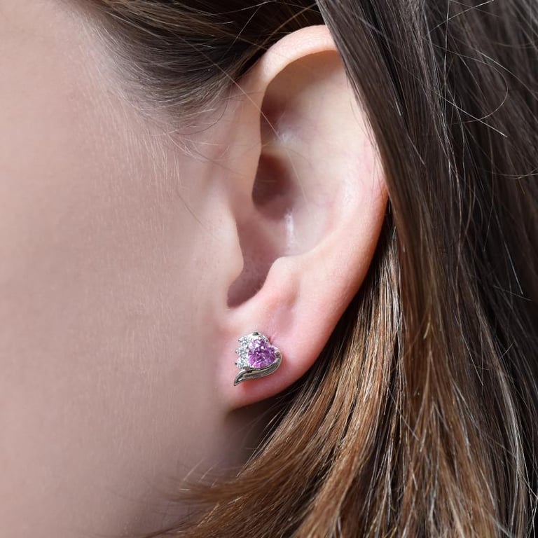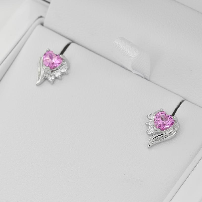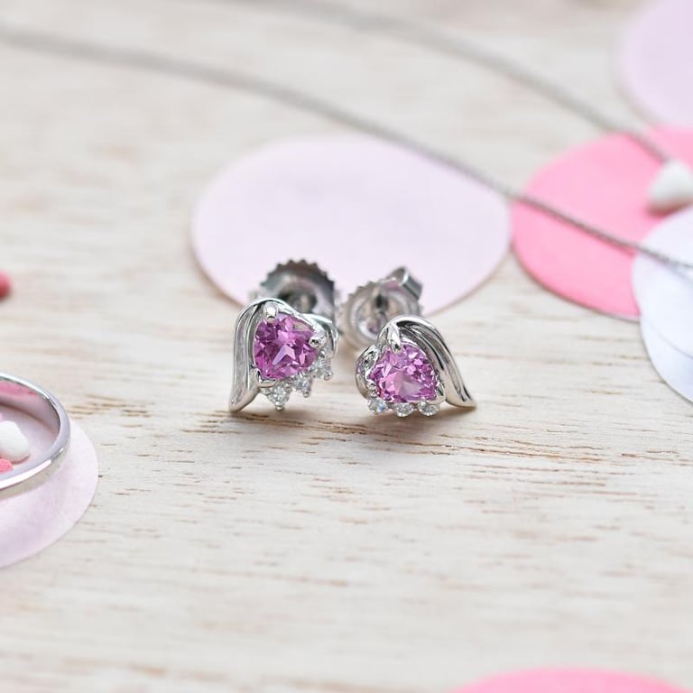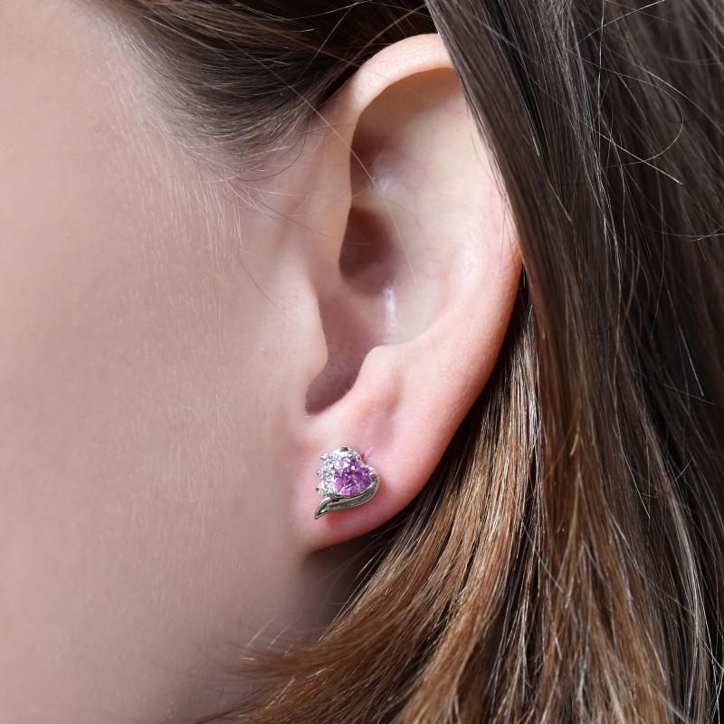 Silberne Ohrringe mit rosa Saphirherzen und Zirkonia Miane