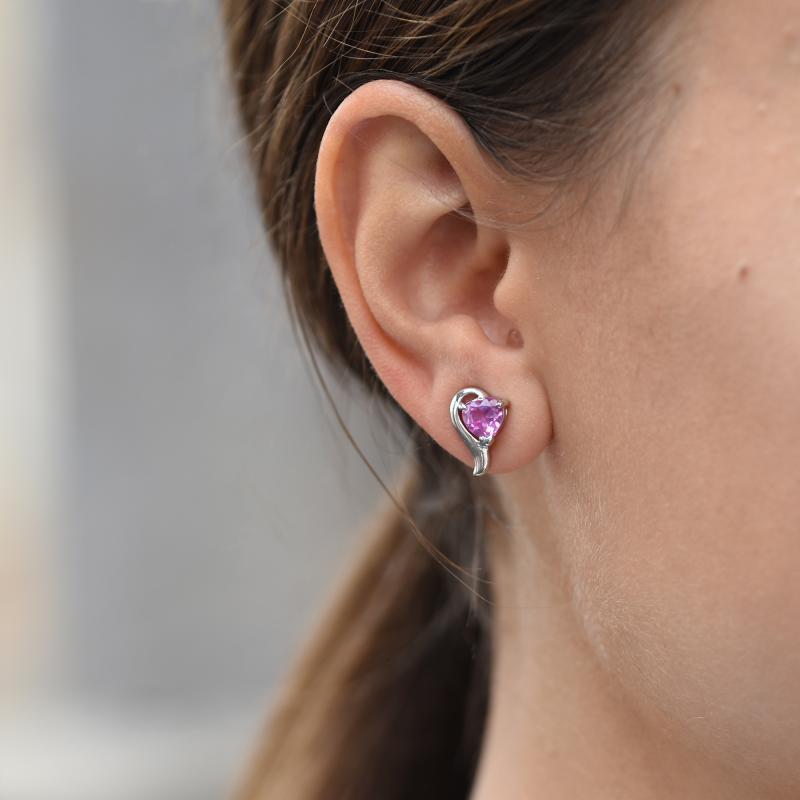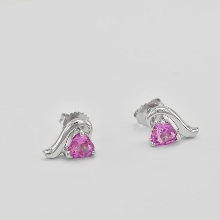 • raffinierte Ohrstecker mit rosa, im Labor hergestellten Saphiren