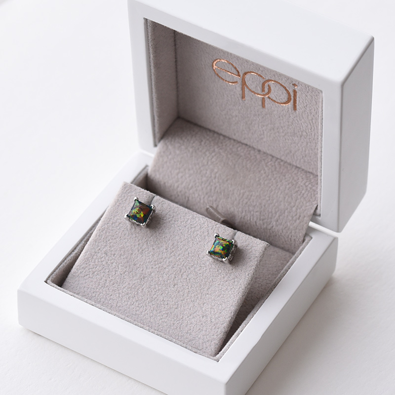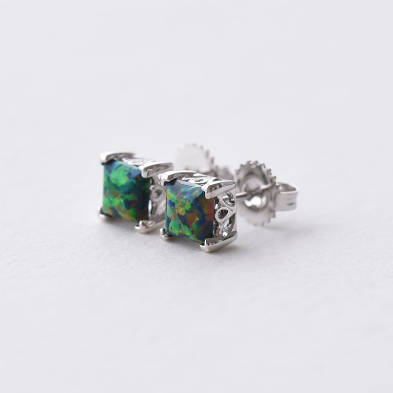 • diese silbernen Ohrringe wurden mit magischen Opalen in schwarzer Farbe besetzt