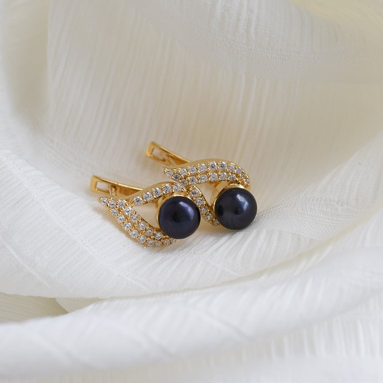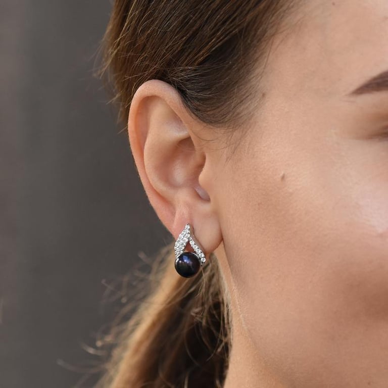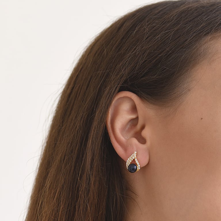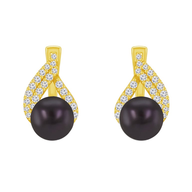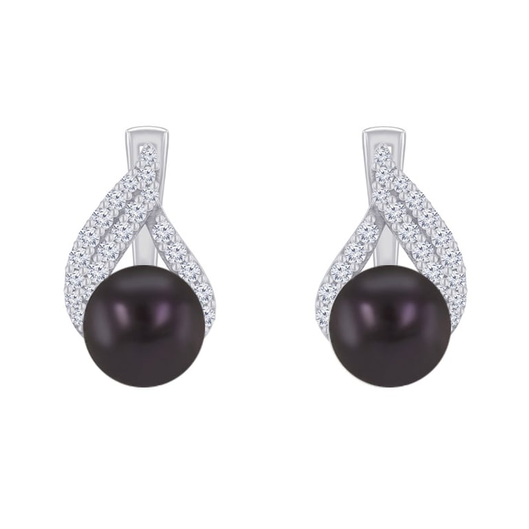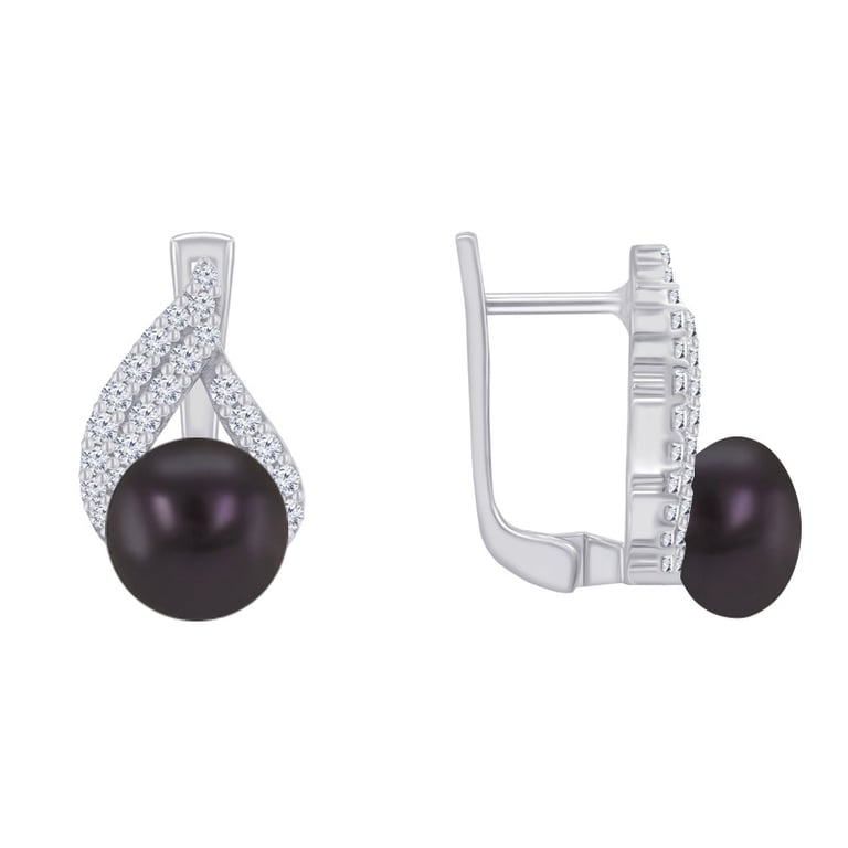 Silberne Ohrringe mit schwarzen Perlen und Zirkonia Zona