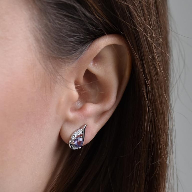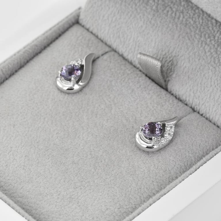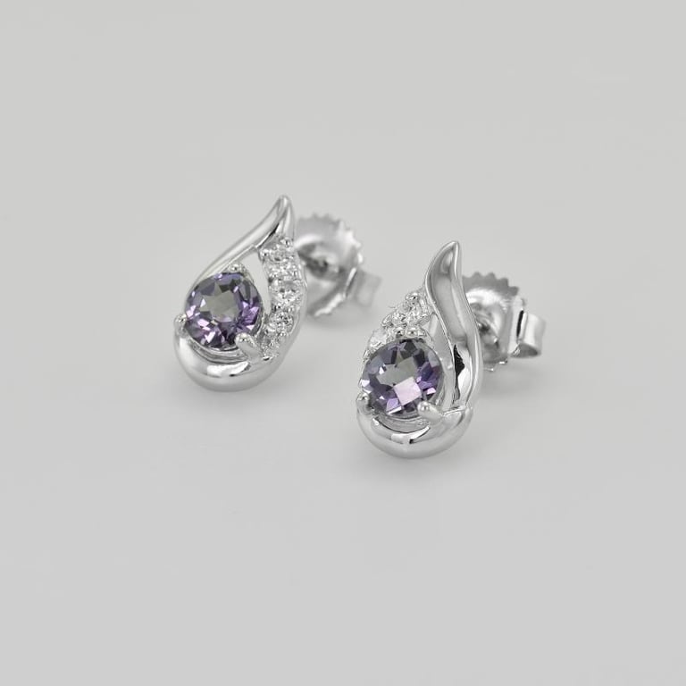 Silberne Ohrringe mit simulierten Alexandriten Edily