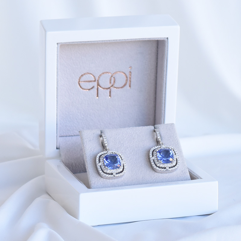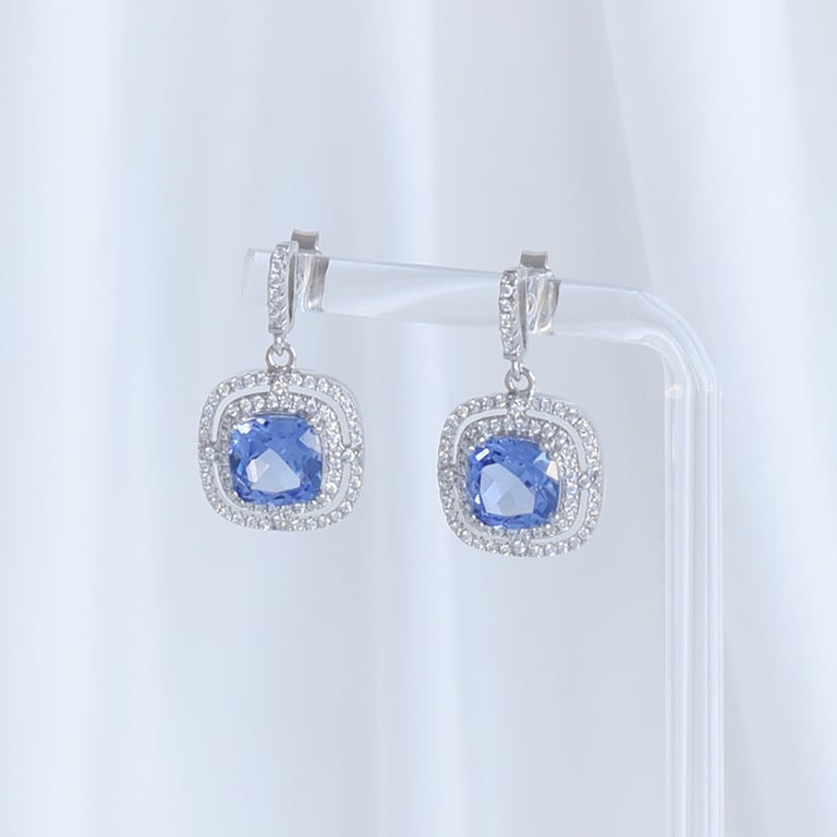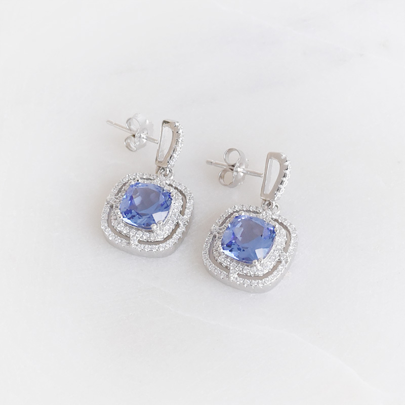 • elegante Silberohrringe mit Tansaniten und glänzenden Zirkonia