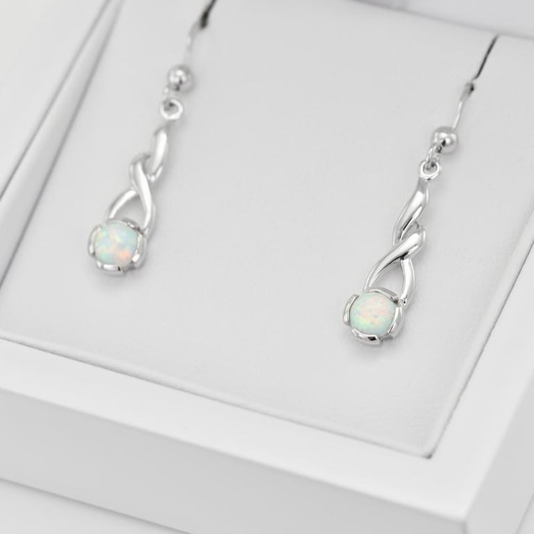 • die Hängeohrringe kombinieren zärtliches Silber mit der Schönheit weißer Opale
