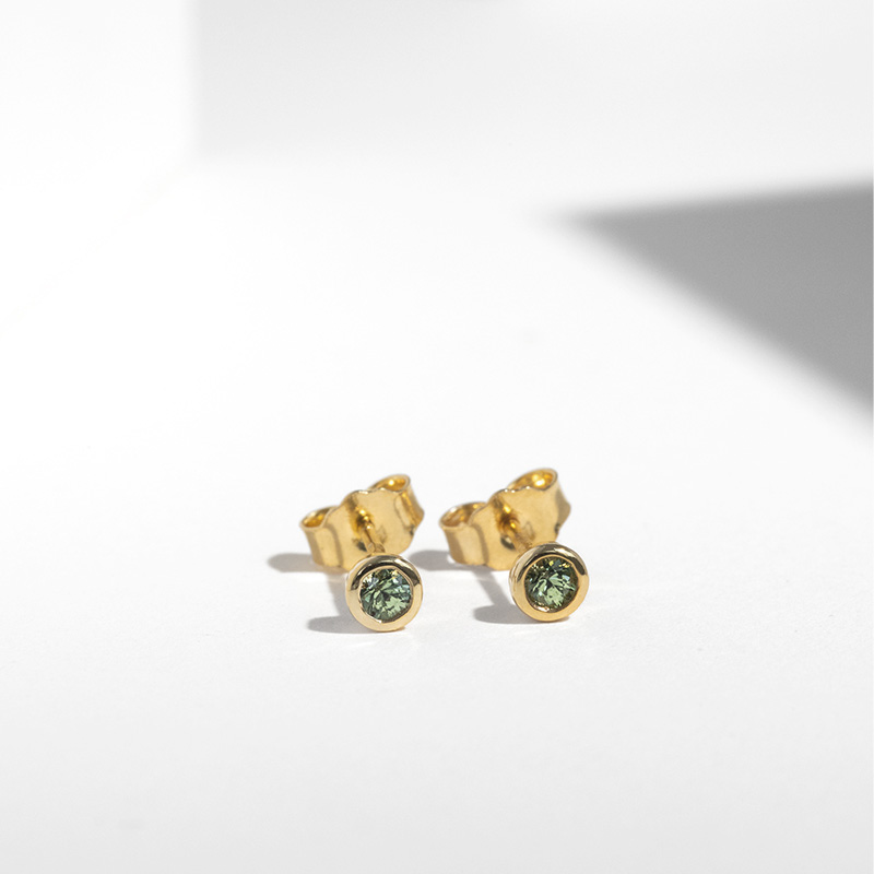 Silberne Ohrstecker mit grünen Saphiren in Bezelfassung Tofine