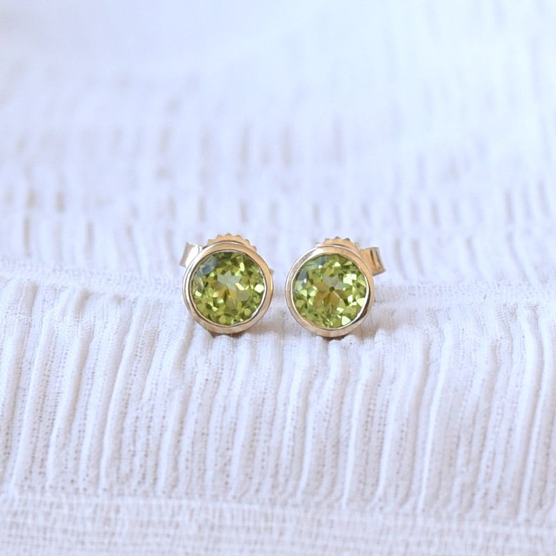 Silberne Ohrstecker mit Olivinen in Bezelfassung Wetty