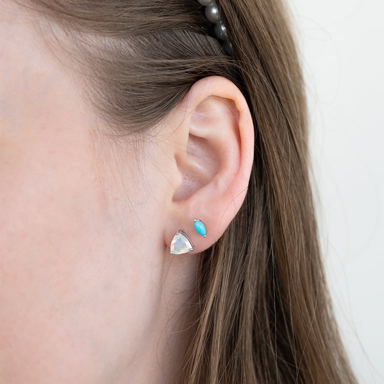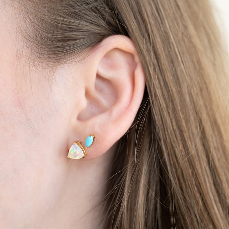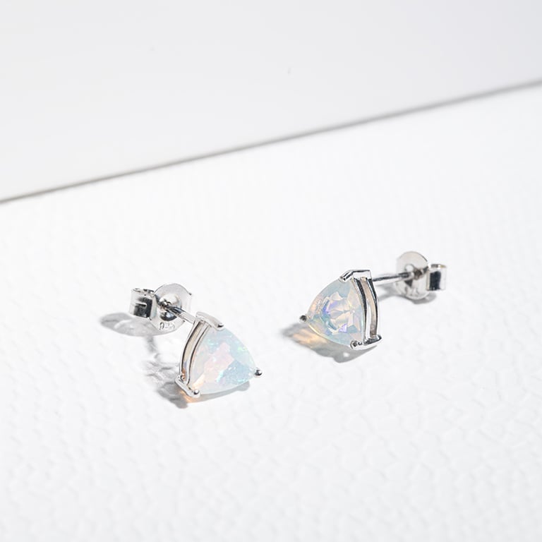 • die Opale sind in einer anmutigen, dreieckigen Trillion-Form präzisionsgeschliffen