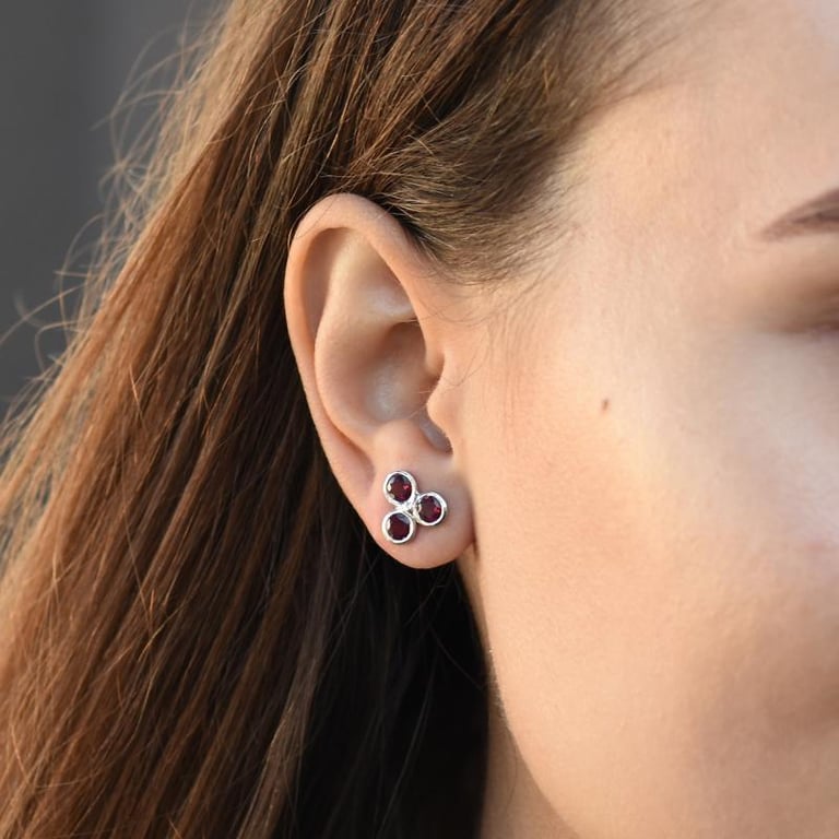 • effektvolle silberne Ohrstecker mit jeweils drei Rhodoliten