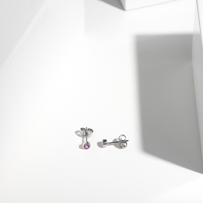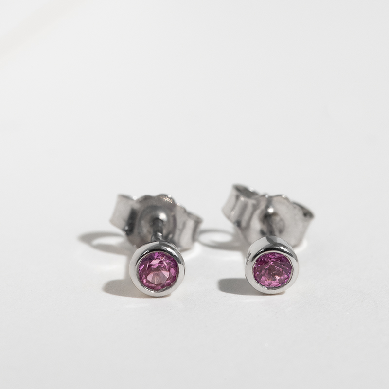 Silberne Ohrstecker mit rosa Saphiren in Bezelfassung Tofine
