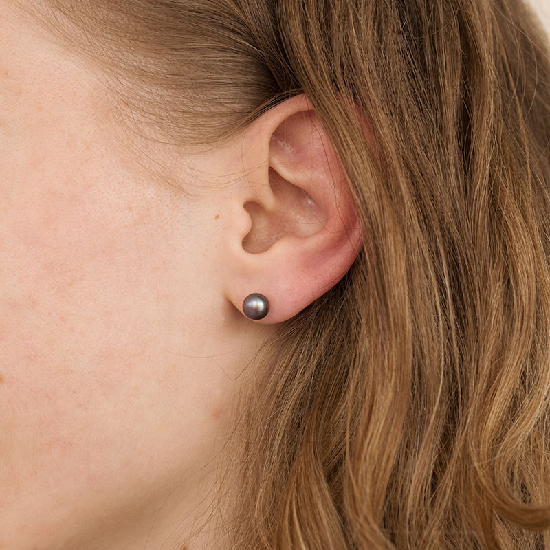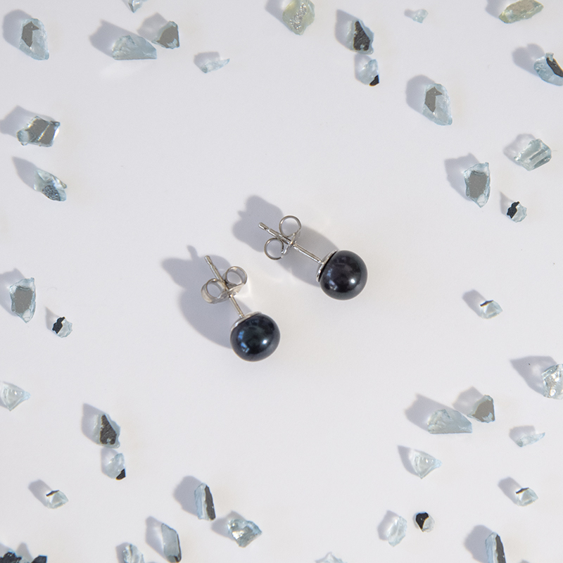 Silberne Ohrstecker mit schwarzen Perlen Bahia