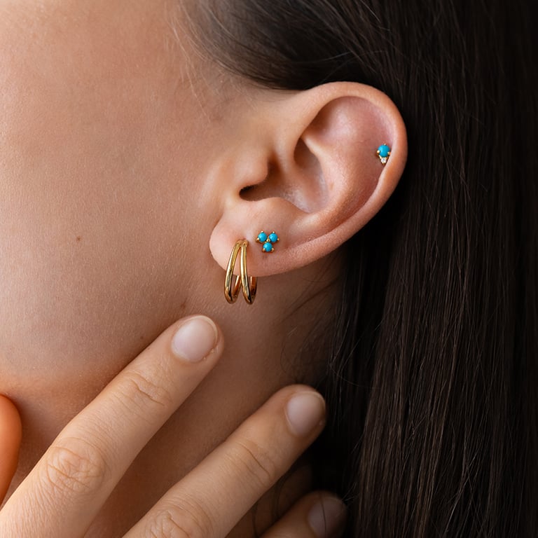 Goldener Piercingstecker mit Türkisen Wendy