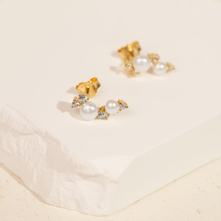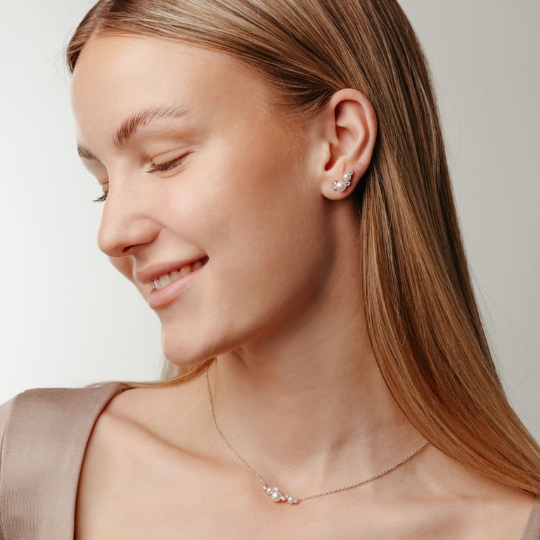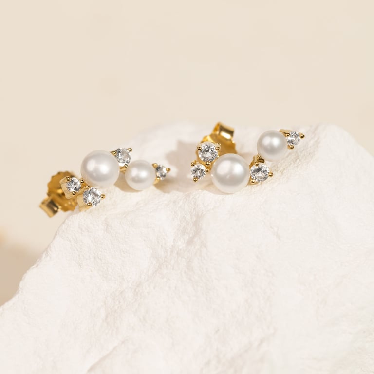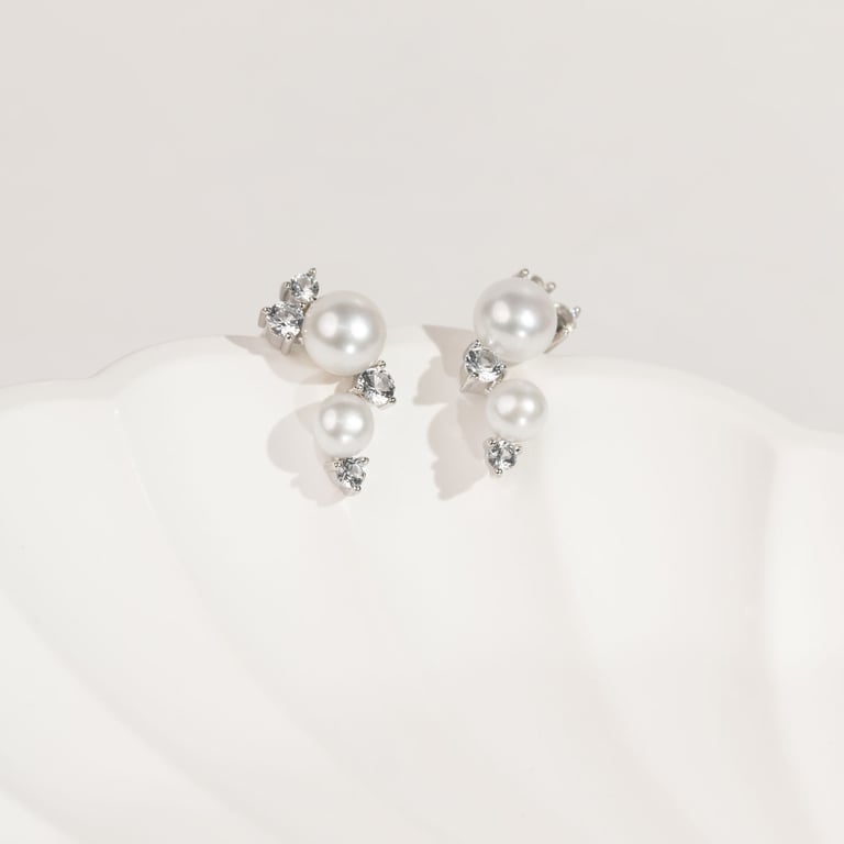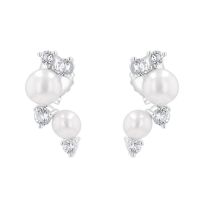 Silberne Perlenohrringe mit weißen Topasen Anita