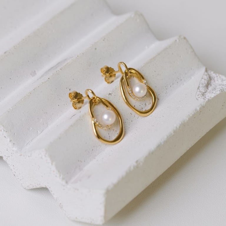 • wenn die Zartheit einer Perle mit dem Funkeln eines weißen Topas und der Wärme von Gold kombiniert wird, entstehen Ohrringe, die ohne Worte sprechen