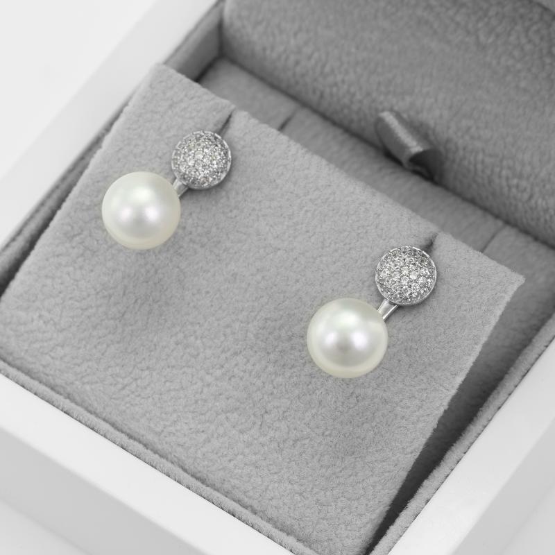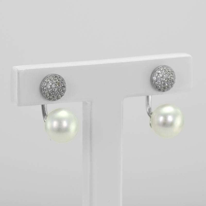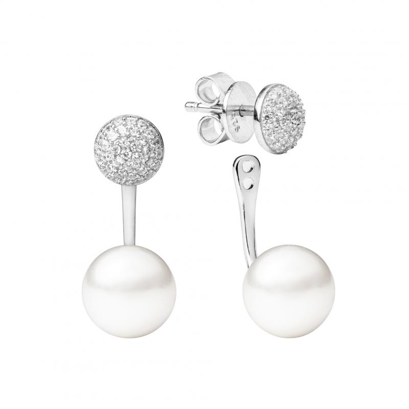 Silberne Perlenohrringe mit Zirkonia 2in1 Pollux