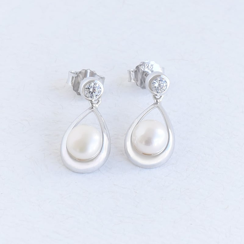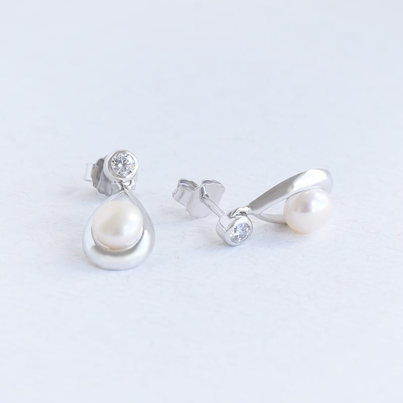 Silberne Perlenohrringe mit Zirkonia Dominia
