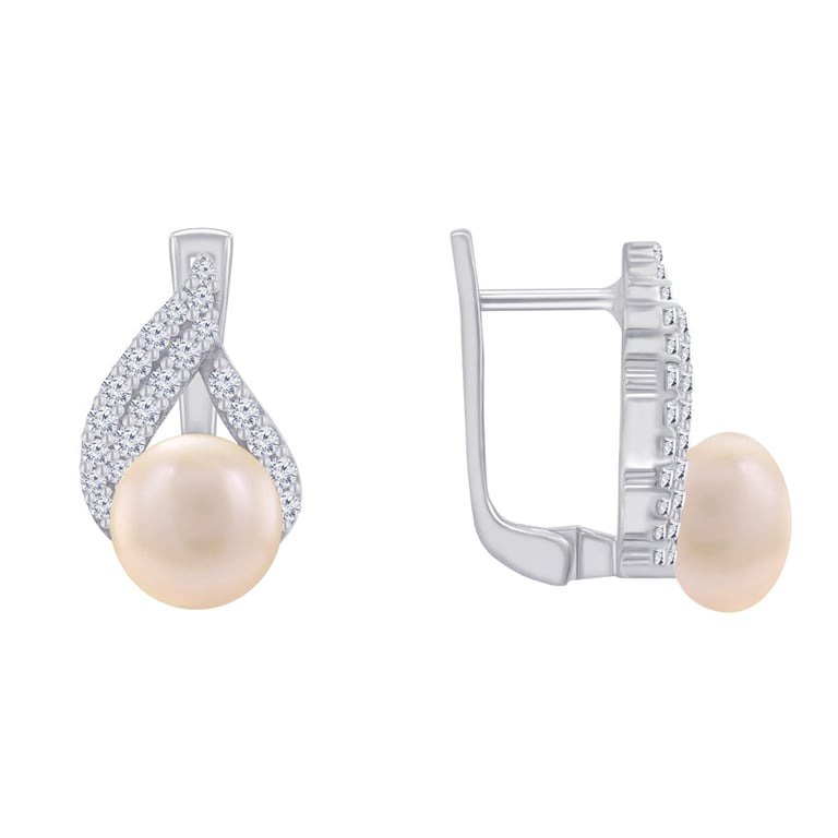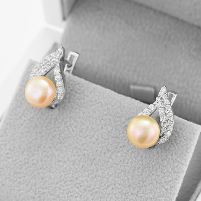 • silberne Ohrstecker mit pfirsichfarbenen Perlen