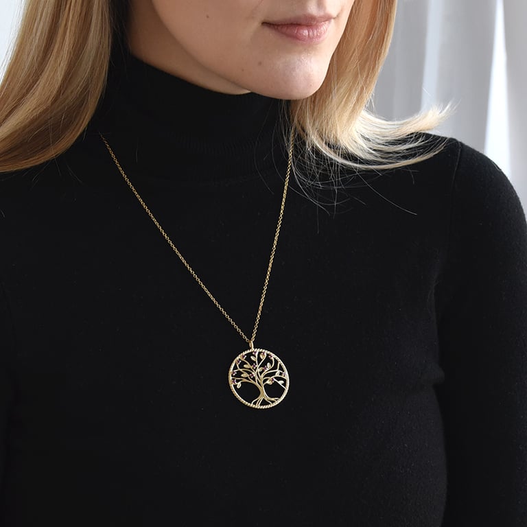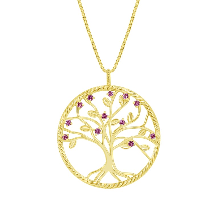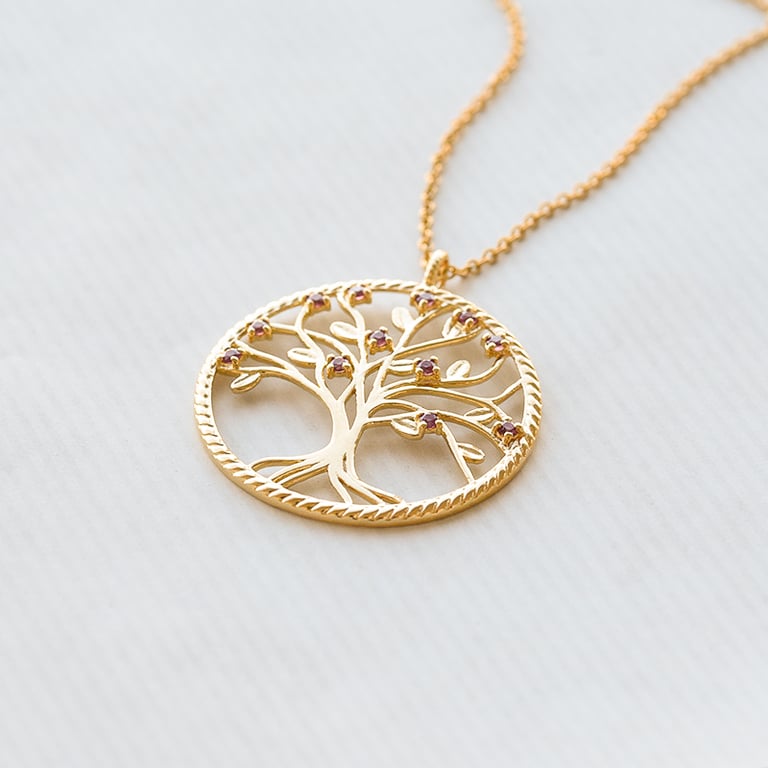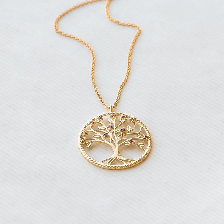Silberne Rhodolith-Anhänger in Form des Baum des Lebens Byrd