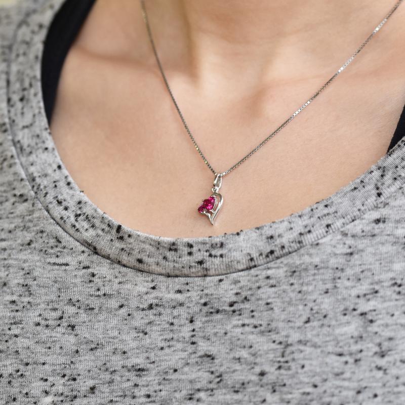 • Kette mit silbernem Anhänger mit runden und herzförmigen Rubinen
